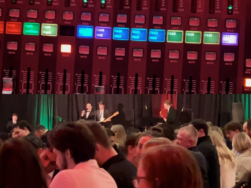Christmas time brings the music that everyone loves to hear. Working a Chris-tmas party at the Utah Valley Convention Center, I brought this joy to the audience as I mixed live a jazz band consisting of a drummer, bassist, keyboard, saxophonist, and singer.